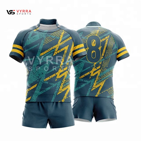 • Full custom made rugby uniforms which can be made in any color and design.  Team logos also included.